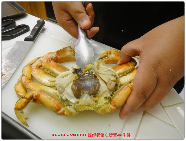 白天從Quality Seafood打包一隻大龍蝦當晚餐吃,Tim正努力認真拆解龍蝦殼。